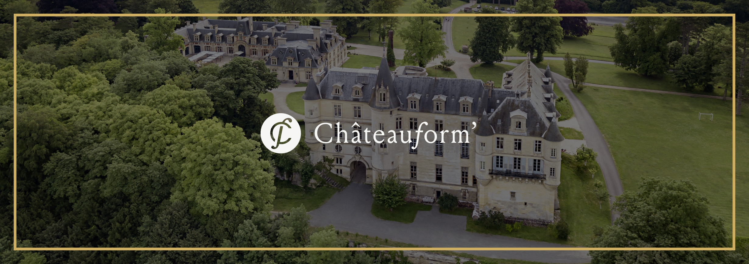 Le logo Châteauform’ a été ajouté en haut à gauche, qui m’a inspiré par un détail que j’ai vu sur la brochure « En Ville », ce qui permet d’ajouter un petit plus à l’affiche.