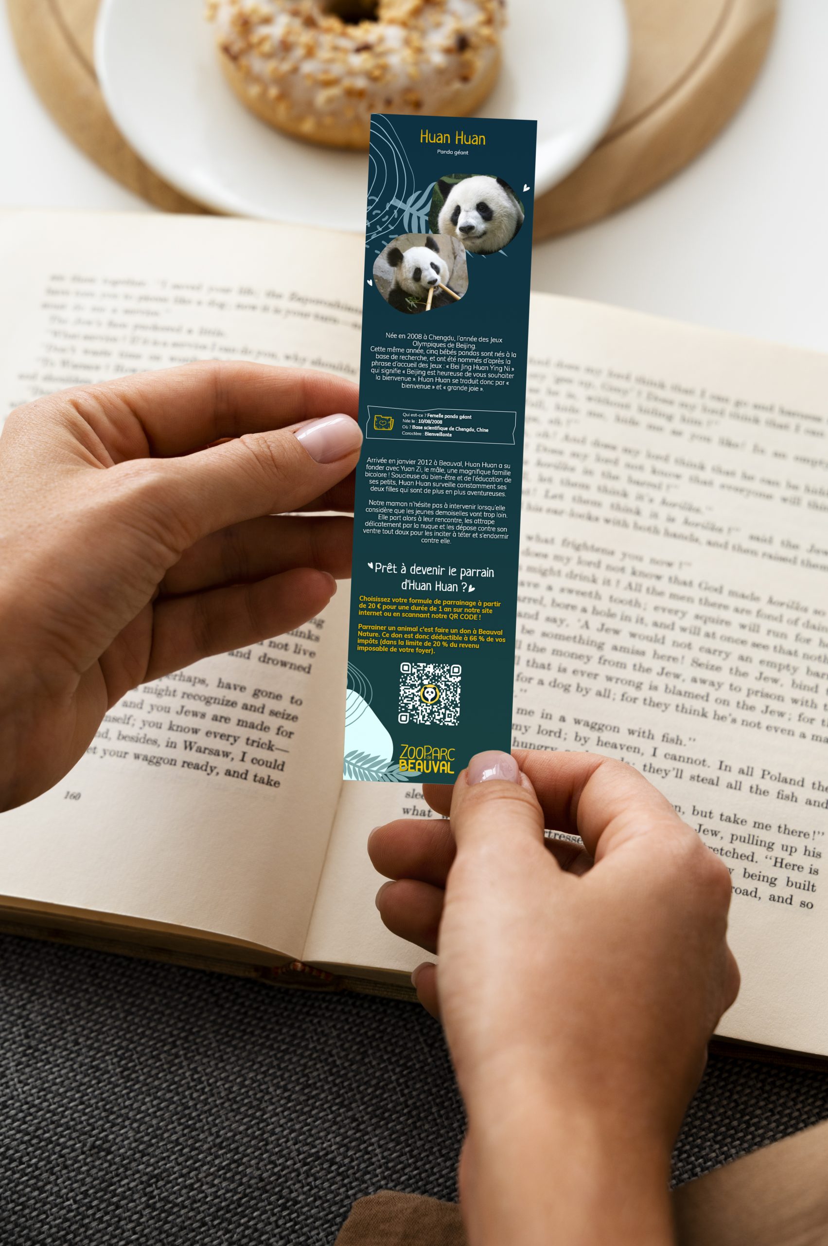 J’ai pu reprendre la charte graphique du zoo pour ses créations, j’ai créé un QR CODE qui permet de renvoyer directement sur la page des animaux à parrainer. L’idée serait de pouvoir laisser différents marque-pages dans les sacs donnés au client lors de leurs achats.